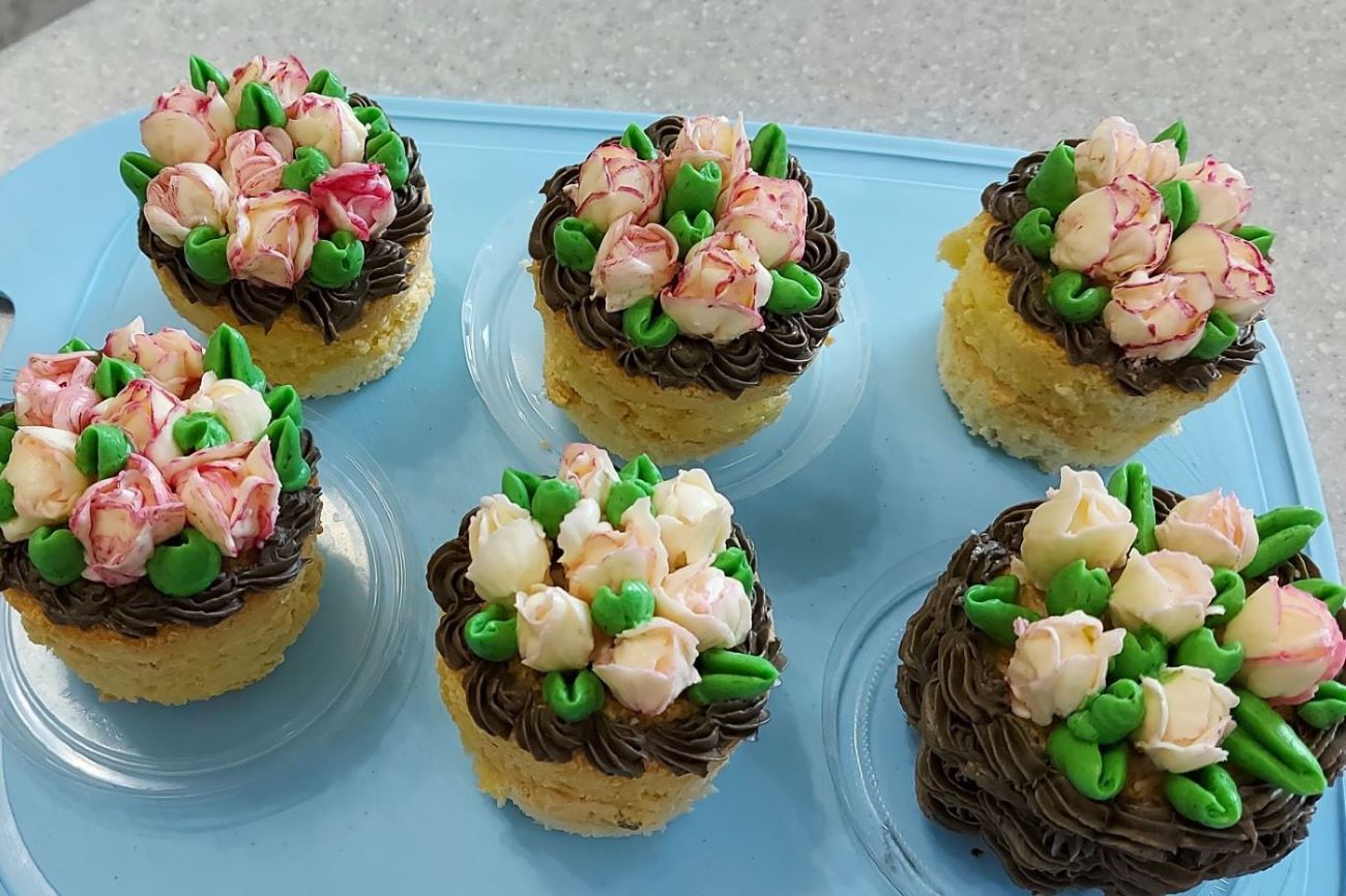 Бисквитные пирожные корзиночки с тюльпанами. Масляно молочный крем