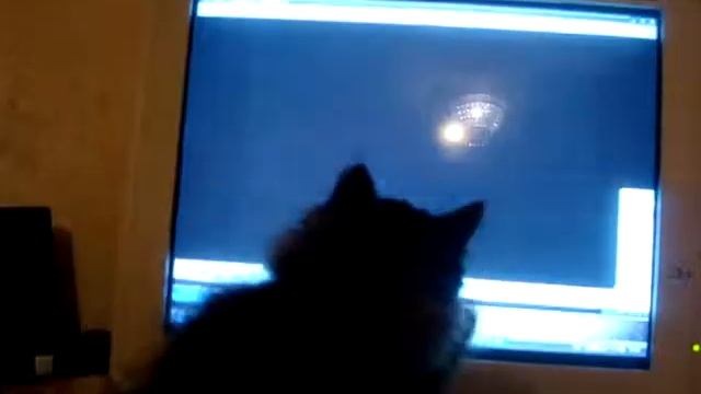 Кошка играет с мышкой на мониторе / Котенок ловит мышь на мониторе