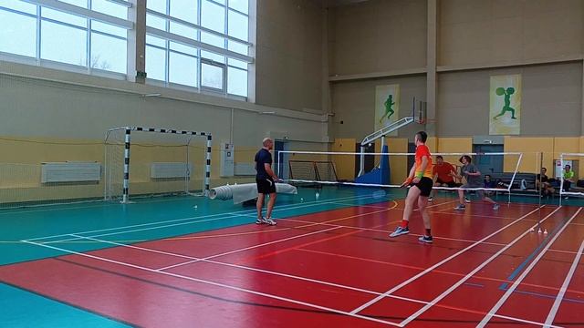 Тренировочная игра в бадминтон через сетку. Играют любители, новички и опытные бадминтонисты. Игра на сборах в доме отдыха Снегири от клуба Искра 6-8 декабря 2024 #badminton #badmintonlovers #badmintonrussia #бадминтон #искра #iskra #snegiri #снегири