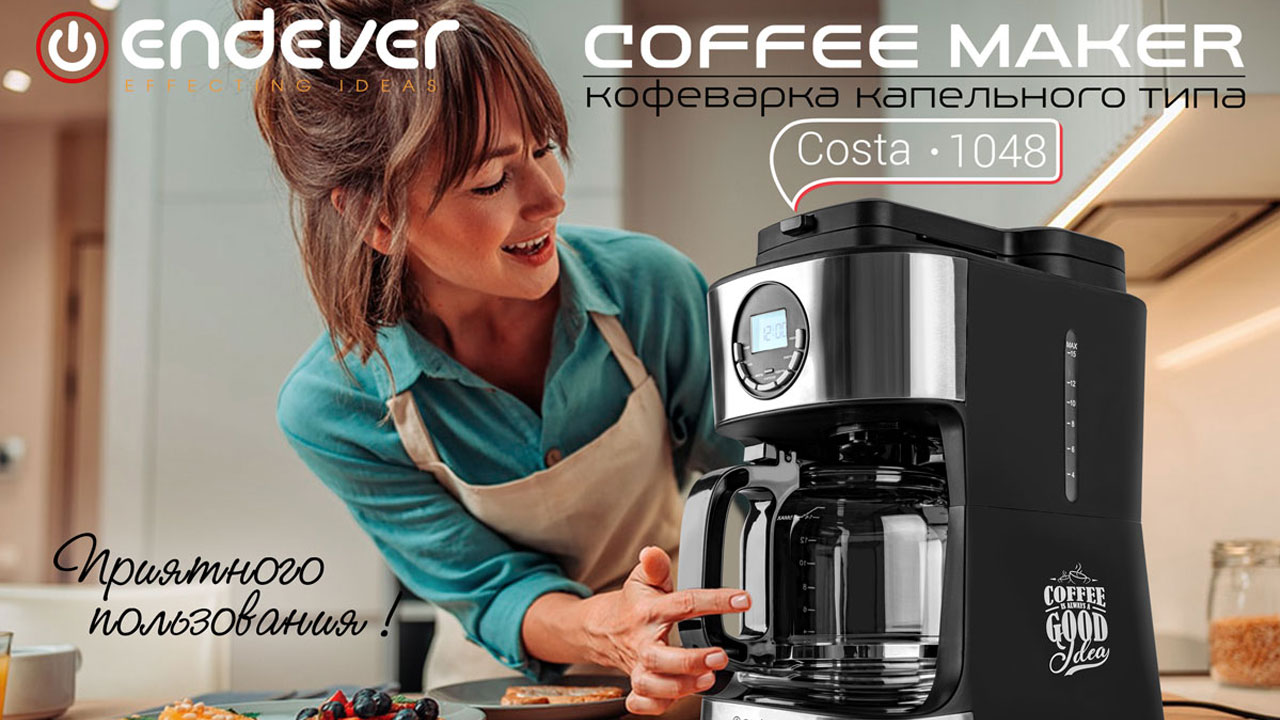 Endever Costa-1048: Наслаждение кофе на новом уровне! Откройте для себя неповторимый вкус кофе с новейшей электрической кофеваркой капельного типа Endever Costa-1048. Эта капельная кофеварка сочетает в себе стильный дизайн, высокую производительность и умные функции для настоящих ценителей кофе. Интегрированная кофемолка: Costa-1048 оснащена встроенной кофемолкой, что позволяет вам наслаждаться ароматом свежемолотого кофе. Используйте молотый кофе или цельные зерна - выбор за вами. Большой резервуар для воды: С водяным резервуаром объемом 1,8 л, вы можете приготовить до 12 чашек кофе, не беспокоясь о постоянной доливке воды. Тепло до последней капли: Функция поддержания тепла позволяет сохранять кофе горячим до 40 минут после завершения приготовления. Умные технологии: LCD дисплей и функция индикации времени делают управление кофеваркой максимально удобным. Таймер отложенного старта до 12 часов позволяет настроить кофеварку заранее, чтобы просыпаться с ароматом кофе. Практичные решения: Съемный многоразовый фильтр обеспечивает легкость в обслуживании, а функция очистки упрощает процесс ухода за кофеваркой. Endever Costa-1048 - это не просто кофеварка, это опыт, который заслуживает быть разделенным. Сочетание стиля, производительности и инноваций, которые переведут ваш кофейный опыт на новый уровень. Наслаждайтесь каждой чашкой с Costa-1048! Подробнее https://www.endever.su/catalog/coffee/endever_costa_1048/