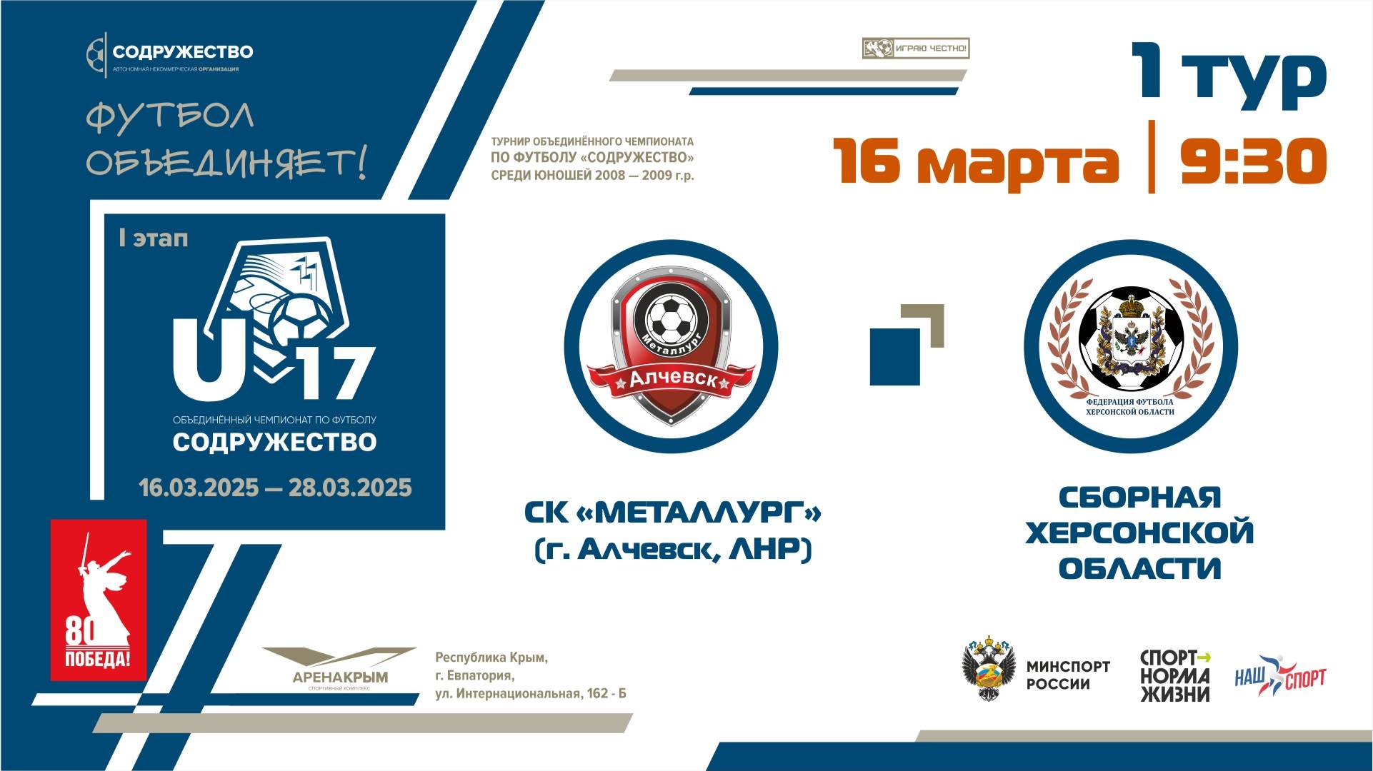1 ТУР | U-17 | СК "Металлург" (Алчевск, ЛНР) - Сборная Херсонской области