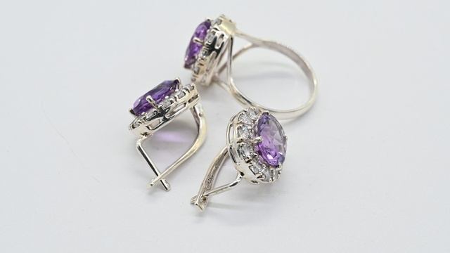 Кольцо и Серьги С925 с аметистом овал 14*16мм, размер 18, 12г Арт: с203058-18