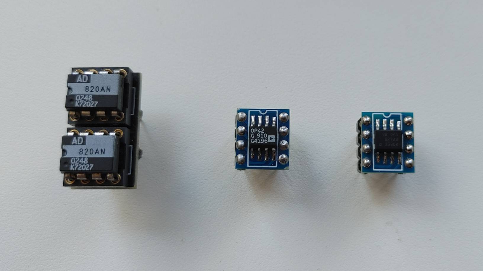 Операционные усилители одноканальные AD820, OP42, OPA627. Слушаем, сравниваем.