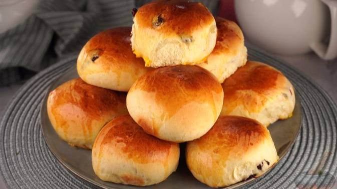 Сладкие булочки из сдобного теста с изюмом и вяленой клюквой отлично подойдут для чаепития. Перед выпечкой булочки смазываются желтком, в результате чего получаются румяными снаружи. А внутри они очень мягкие и пористые. #ДрожжеваяВыпечка #СладкаяВыпечка #СладкиеБулочки #ДрожжевоеТесто