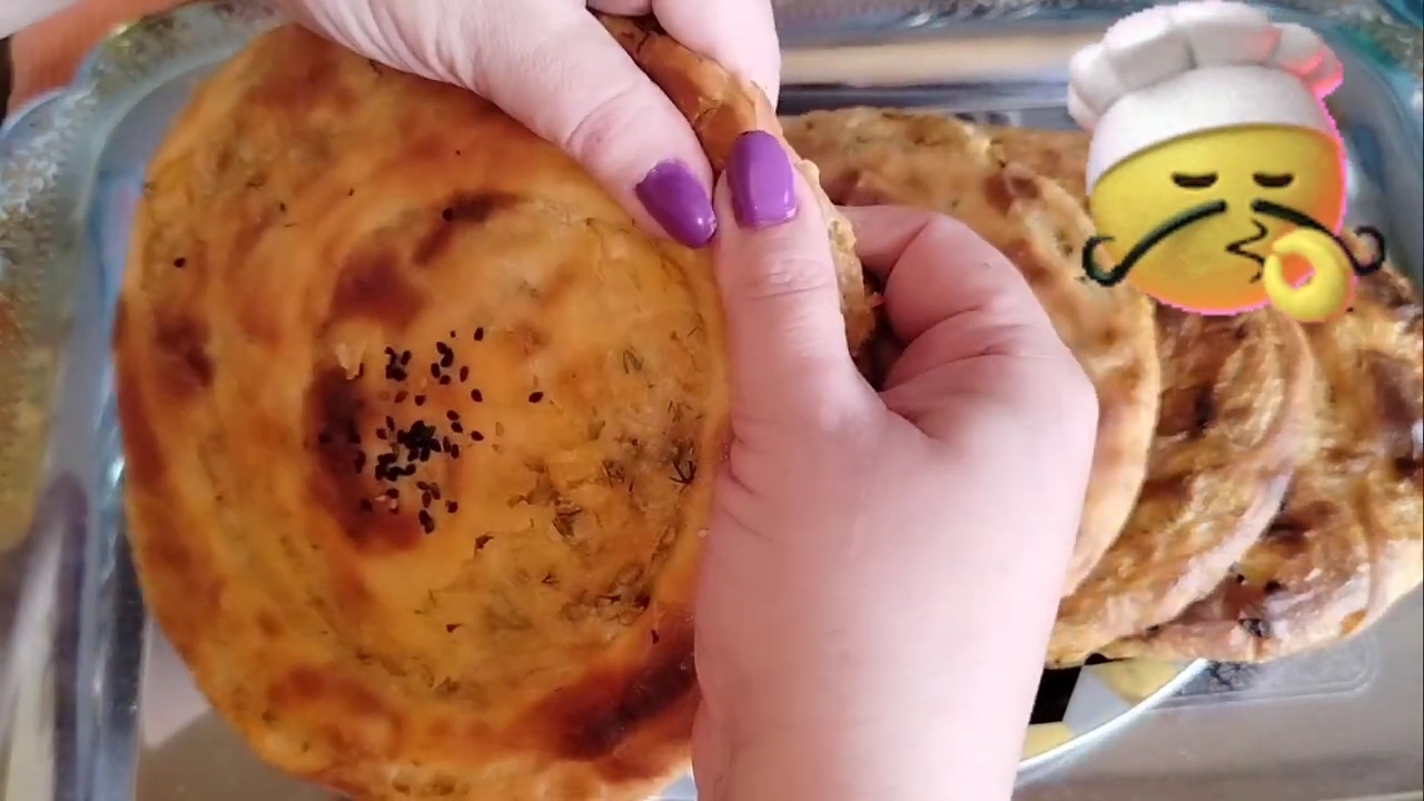 Узбекская кухня. Слоëнные лепëшки с луковой начинкой.