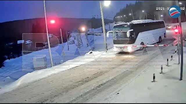 Лишь царапина: автобус успел избежать столкновения с грузовым составом
