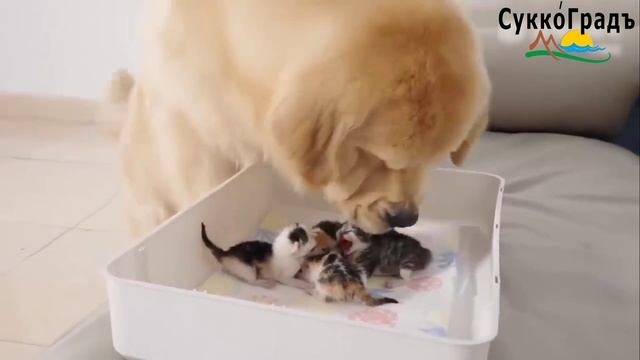 Ретривер и котята🥰