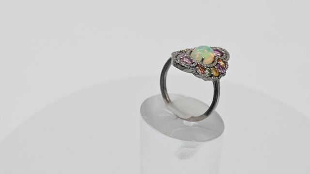 Кольцо С925 с опалом, турмалином, сапфиром и алмазами, размер 17, 3,4г Арт: с111012-17