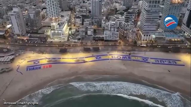 «Спасибо, Трамп»: на пляже Тель-Авива развернули баннер перед его прилётом