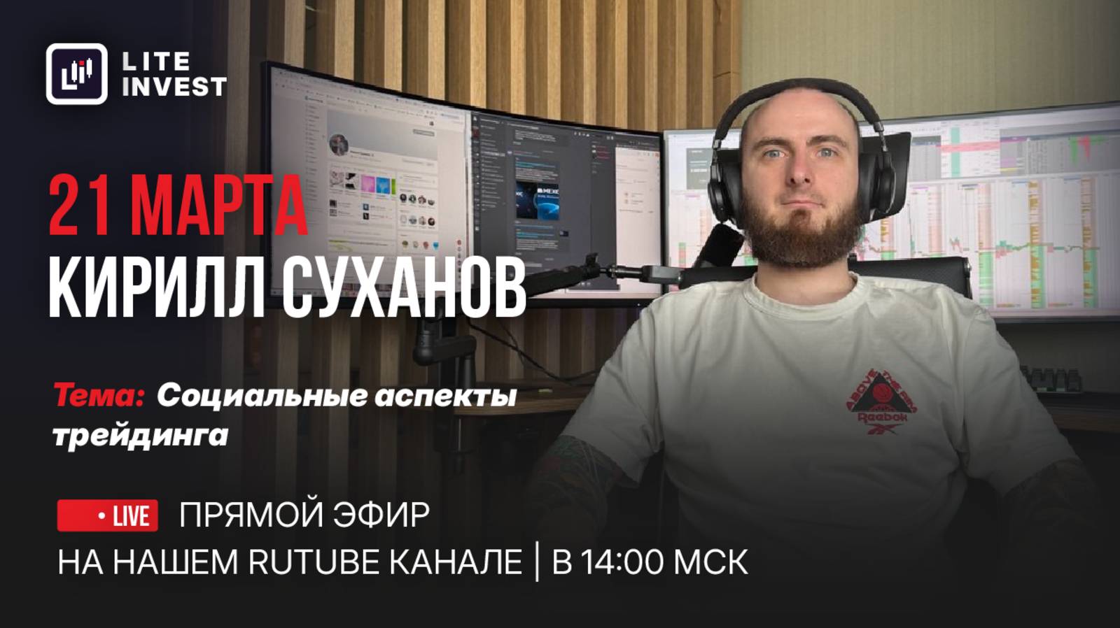 📢 Дорогие друзья и трейдеры нашей компании! Приглашаем вас! 🎉 21 марта на нашем канале RuTube пройдет Прямой эфир с Кириллом Сухановым – наставником и опытным трейдером на тему: 🔻«Социальные аспекты трейдинга» Кирилл раскроет данный вопрос и поделится своим опытом торговли, а также ответит на ваши вопросы 🧑🏽💻 Это отличная возможность пообщаться с профессионалом! ☝🏼 Не пропустите шанс узнать больше о мире трейдинга и взять на заметку ценные рекомендации! 📅 Когда: 21 марта в 14:00 по МСК Подписывайтесь, чтобы не пропустить эфир, и готовьте свои вопросы!