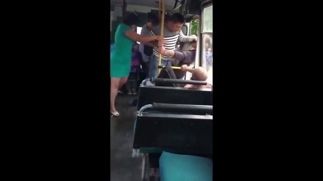 Очень зрелищная драка в автобусе