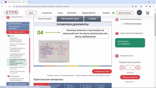 Подробное обучение. КДП со знанием 1С. Инспектор по кадрам. Уровень 5 профстандарта | РУНО