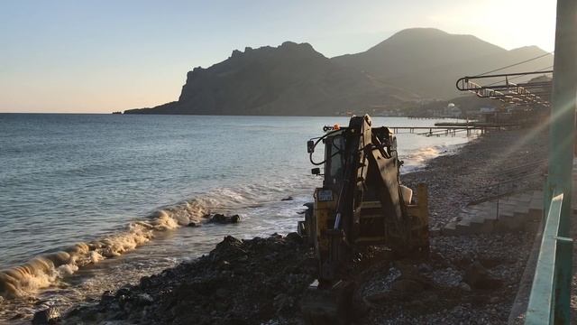 Что делает Экскаватор на пляже Коктебеля? Крым Коктебель пляж рансионата Голубого залива