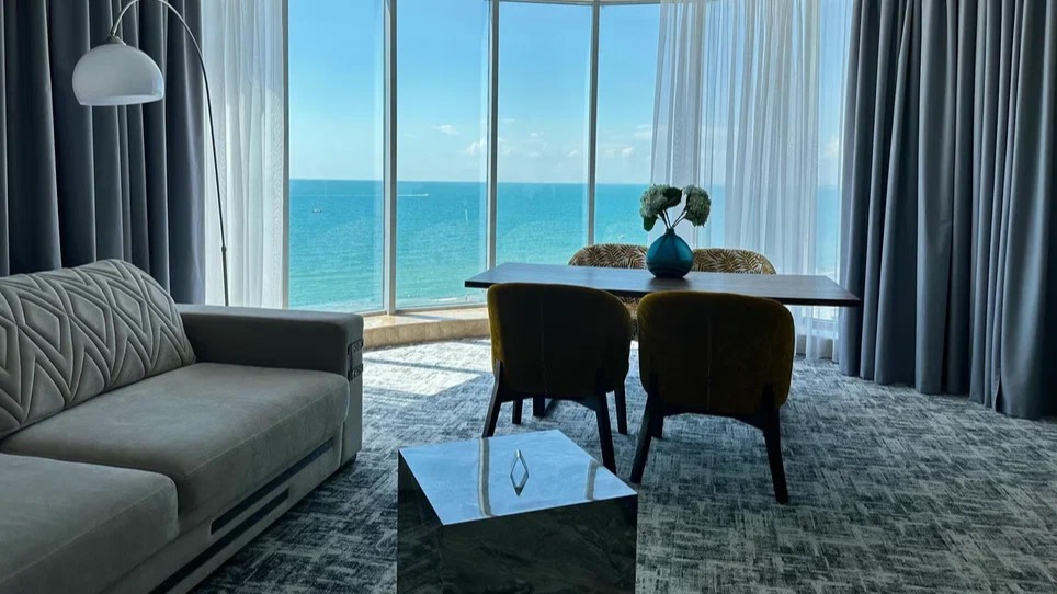 Изысканный интерьер апартаментов с террасой стоит того, чтобы остановить внимание на многочисленных деталях. Номер площадью 250 м2 кажется утонченным и гостеприимным. Светлые оттенки стен и текстиля элегантно подчеркивают предметы мебели из натурального дерева или обивку цвета морской волны. Номер включает две спальни с кроватями "кинг сайз" и гостиную с обеденной зоной. Каждая комната оснащена необходимой для идеального отдыха мебелью и современной техникой. Большая видовая терраса с навесом и уютными качелями, несомненно, станет местом частых встреч. Для гостей апартаментов с бассейном эксклюзивно доступны следующие дополнительные услуги: * трансфер до железнодорожного вокзала; * круглосуточный батлер-сервис; * вечерний сервис по вашему запросу (обслуживание производится в интервале между 18:00 и 21:00, включает косметическую уборку и подготовку номера ко сну); * меню подушек; * индивидуальное бунгало на пляже, соответствующее номеру апартаментов. Акции и спецпредложения отеля: https://grandhotelanapa.ru/offers/ Бронирование: https://grandhotelanapa.ru/booking/ Наш Instagram: http://instagram.com/grandhotelanapa Мы Вконтакте https://vk.com/grandhotelanapa Наш Telegram https://t.me/grandhotelanapa
