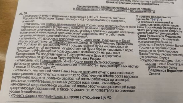 Поддержите нас донатом 5599 0020 9799 4521 Юмани карта Наш тг там больше видео t.me/newrealist2 (@newrealist2) Госдума не поддержала законопроект об усилении контроля за Центробанком, включая установление ЦБ целей роста экономики и дополнительных оснований для снятия с должности главы ЦБ. За проголосовало только 84 депутата (я в том числе). Мотивы отклонения: нарушает принцип "независимости" ЦБ.- один из постулатов либералов, когда ЦБ не подчиняется российскому правительству, зато по сути выполняет установки МВФ и правительства "мирового". История с убийственной для экономики ставкой рефинансирования и запрет ЦБ давать кредиты предприятиям из этой серии.