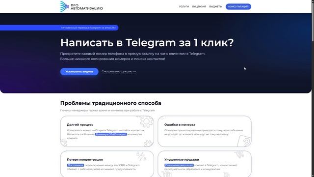 Виджет Мгновенный переход в Telegram из amoCRM