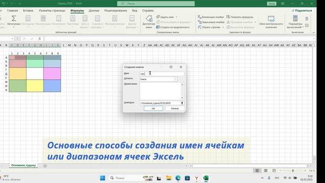 Создание имен в Эксель. Присвоение имени первой (верхней) строке судоку. Автор канала Зайнулин Андрей Евгеньевич. Просьба не заниматься пиратским копированием!