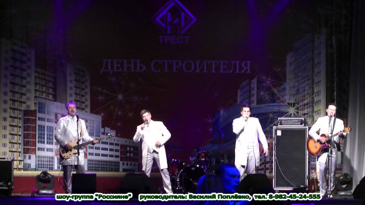 Шоу-группа «Россияне», Василий Поплёвко - руководитель. т/ф. 8-902-83-31-378 E - mail: rossiane-prazdnik@mail.ru сайт: www.rossiane-show-group.ru Государственные и профессиональные праздники, корпоративы, юбилеи, свадебные торжества! Авторские и эстрадные хиты российских авторов 70-80 - 90-2000-х, зарубежных авторов - репертуар Абба, Бони эм, Модерн-токинг, Смоуки, Доктор Албан, Битлз, Оттован и др. - интерактив со зрителями, танцевальная программа.