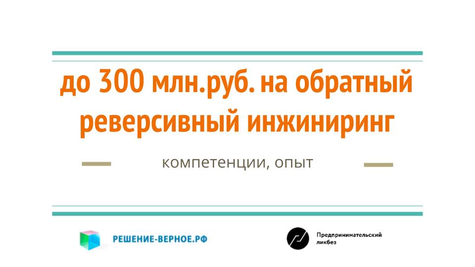 Как получить до 300 млн.руб. на обратный реверсивный инжиниринг? технологические инновации продуктов