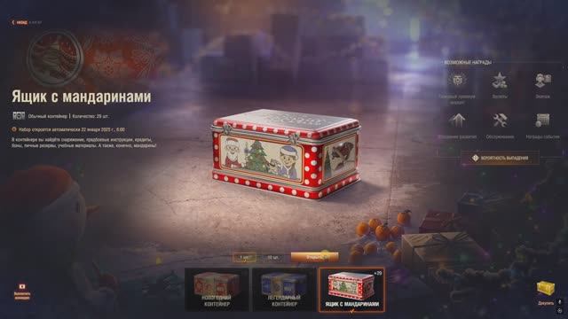 Что выпадет в бесплатных 29 новогодних Ящиках с мандаринами? Куда тратить мандарины? Мир Танков|
