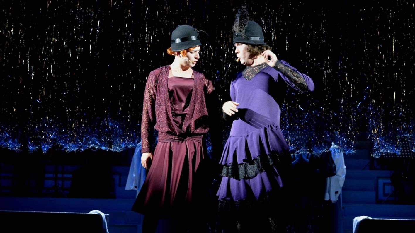 Фрагмент мюзикла Владимира Баскина и Евгения Муравьёва «В джазе только девушки». В ролях: Джо - Сергей Гурьянов. Джерри - Александр Попов. Оренбургский театр музыкальной комедии, 2022 год.