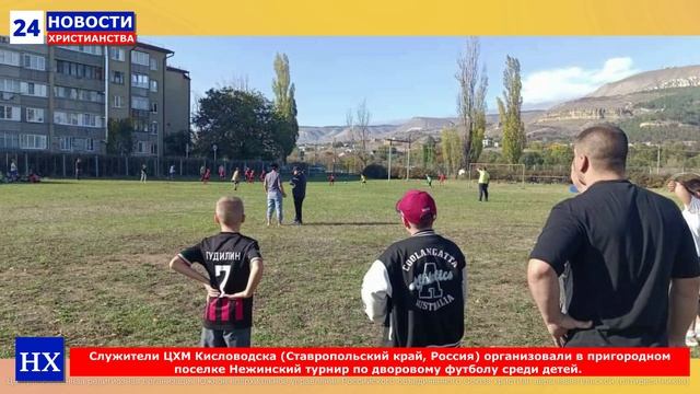Служители ЦХМ города Кисловодска (Ростовская область, Россия) организовали в пригородном посёлке Нежинский турнир по дворому футболу среди детей Ссылка: https://t.me/eparhiaonline