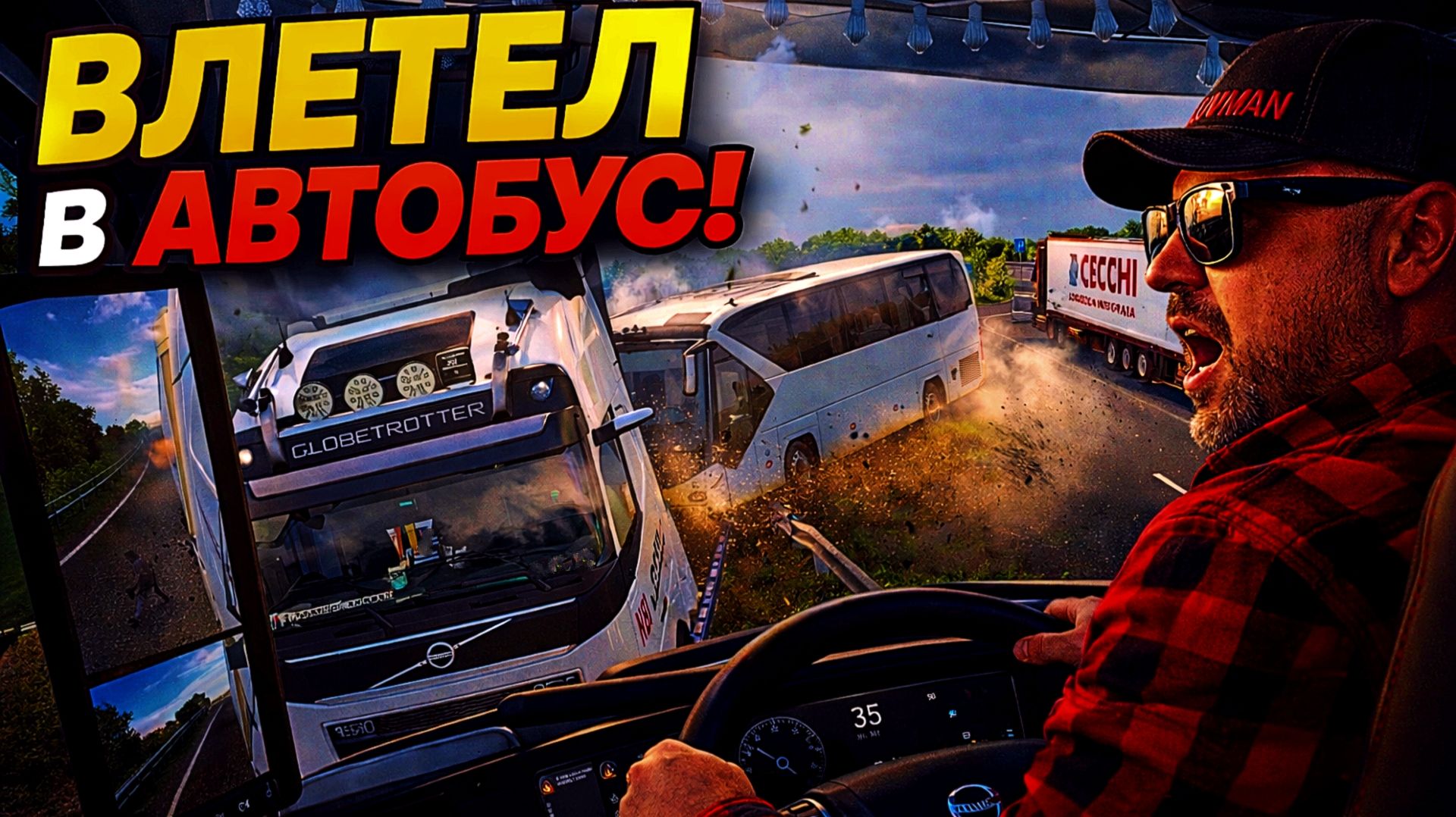 Авария на трассе с автобусом . Я виновник ДТП . ETS2 1.58 Просмотр самой аварии ( 39мин. 35сек. ).... Про сковороду на ( 1ч. 52 мин. )