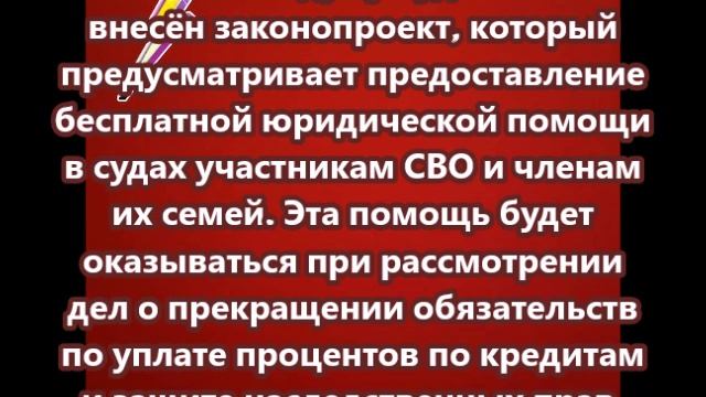 1 ноября в Госдуму будет внесен законопроект, который устанавливает бесплатную юридическую помощь в судах для участников спецоперации