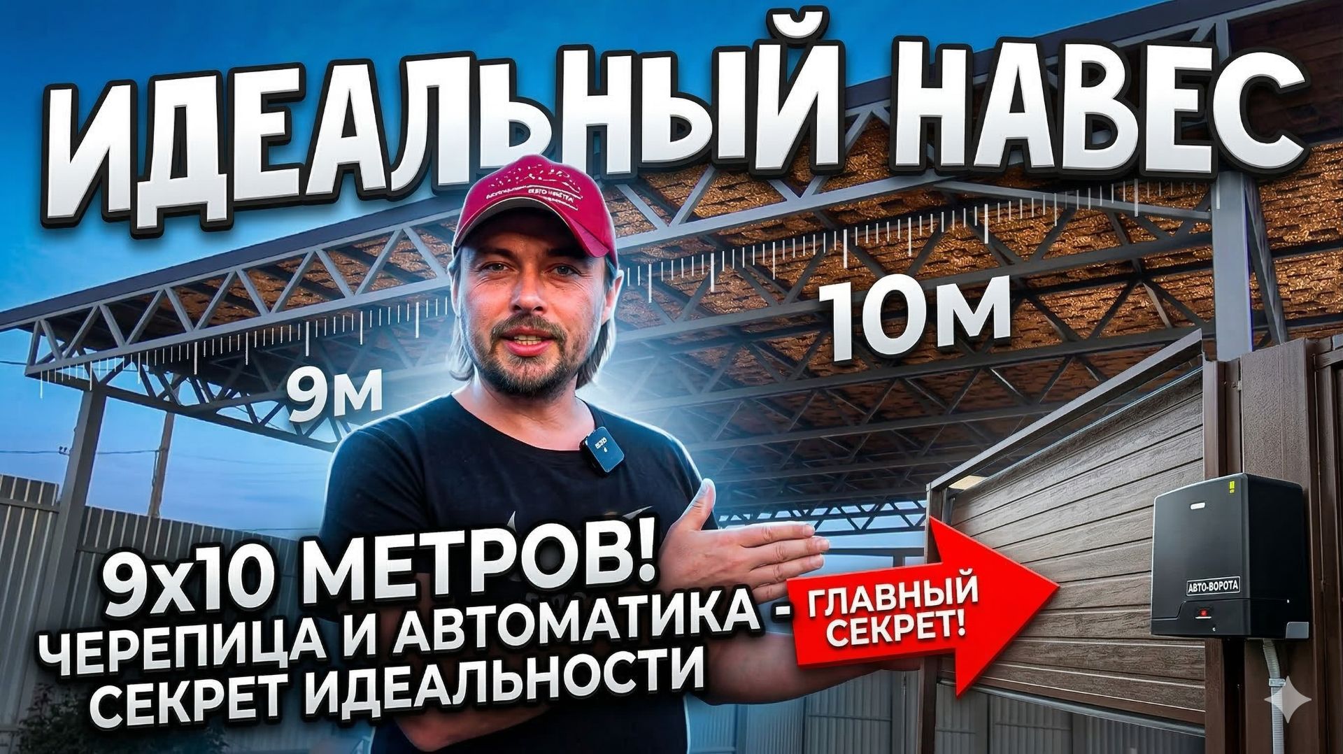 Идеальный навес Строим навес для автомобиля 9м на 10м с мягкой черепицей и автоматическими воротами