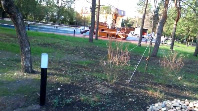 65 НА ПРИОЗЕРНОЙ ТЕРРИТОРИИ У ИГРОВОЙ ПЛОЩАДКИ В ФОРМЕ КОРАБЛЯ УКЛАДЫВАЮТ ПРОРЕЗИНЕННОЕ ПОКРЫТИЕ.