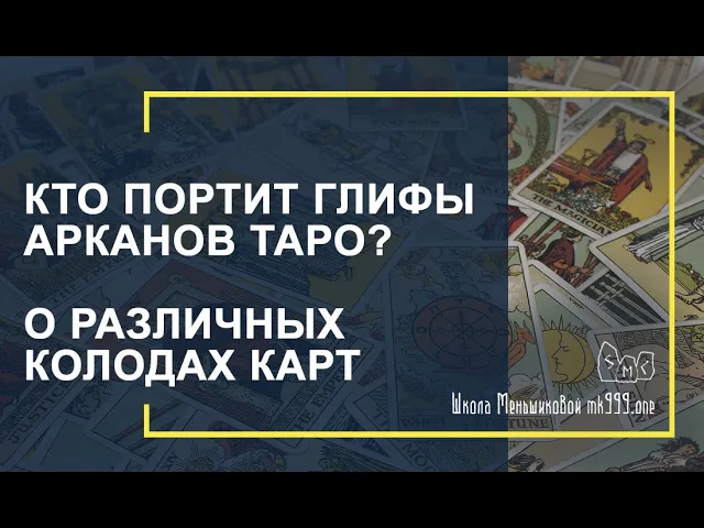 Кто портит глифы арканов ТАРО? О различных колодах карт и не только. Ссылка на магазин Школы для приобретения дисков «Факультет Таро»: http://cart.mk999.ru/index.php?route=product/category&path=69 Кто портит глифы арканов ТАРО? О различных колодах карт и не только. Факультет ТАРО в Школе Меньшиковой не предусматривает обучению гаданию на картах Таро. Арканы Таро – магические порталы, через которые происходит трансформация сознания. Существует много различных колод карт и у каждой из них собственный символизм и система глифов. Поэтому качество колоды карт и точность изображения глифов имеют решающее значение. Кто портит глифы арканов Таро? Каковы цели искажения глифов арканов Таро? Кому выгодно портить глифы арканов Таро? Смотрите также видео из лекций в ШМК: «Чем отличается религия от церкви»: https://www.youtube.com/watch?v=Oawp71pW9I4 «Эгрегор религии. На примере христианского культа»: https://www.youtube.com/watch?v=zbTj7tZrfLs «Религия - это вера или учение?»: https://www.youtube.com/watch?v=bKGuCEFRWXw Сайт Школы: http://mk999.one/ Магический форум: http://magia.one/ #Меньшикова #школаМеньшиковой #школамагии #магия #руны #таро #стихии Набор на 2020 - 2021 г. Занятия проводит лично Ксения Меньшикова. https://mk999.one/novosti/nabor-na-2020-2021-god/