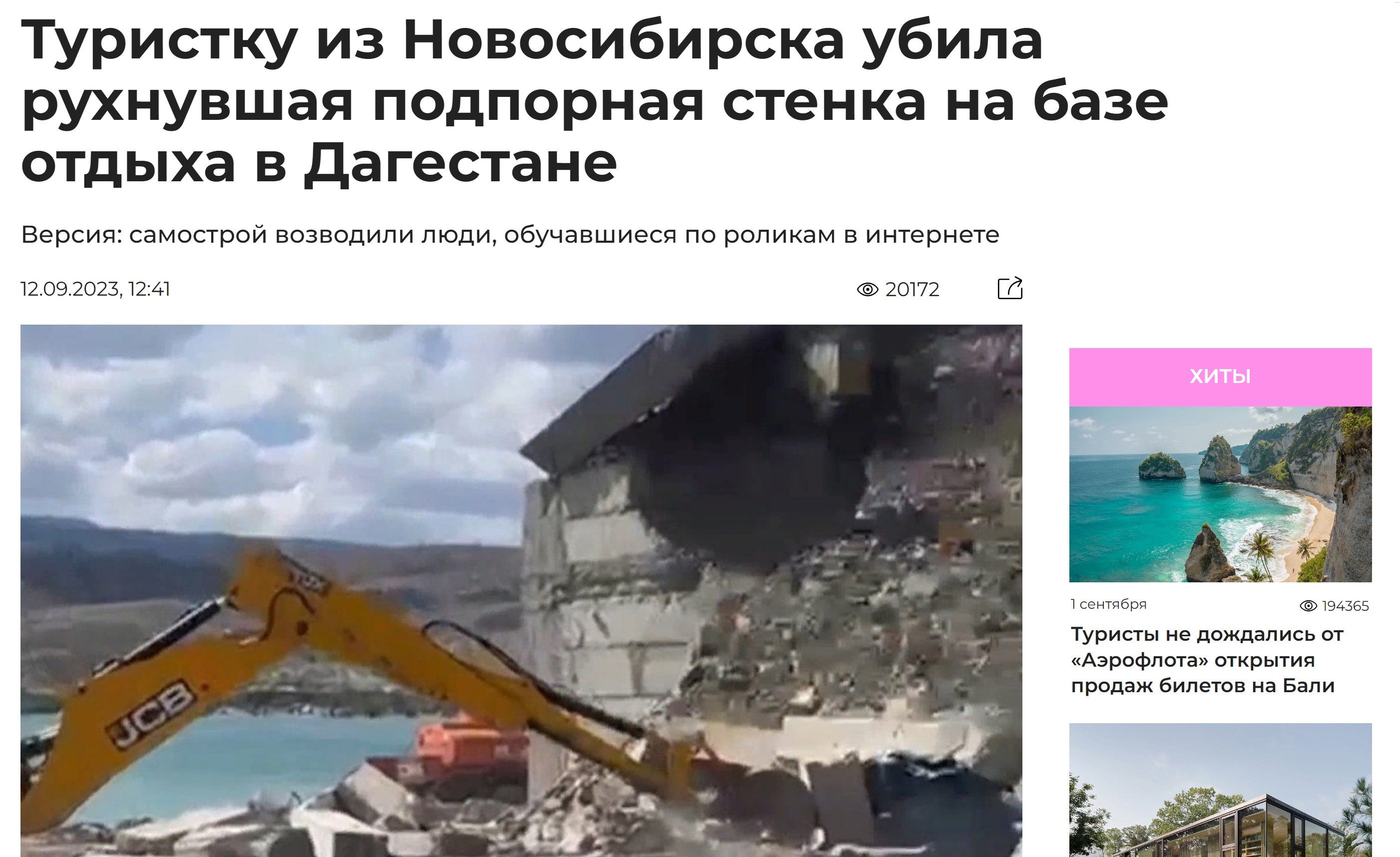 Новости туризма 12/09/2023 Туристку из Новосибирска убила подпорная стенка в Дагестане #туризм