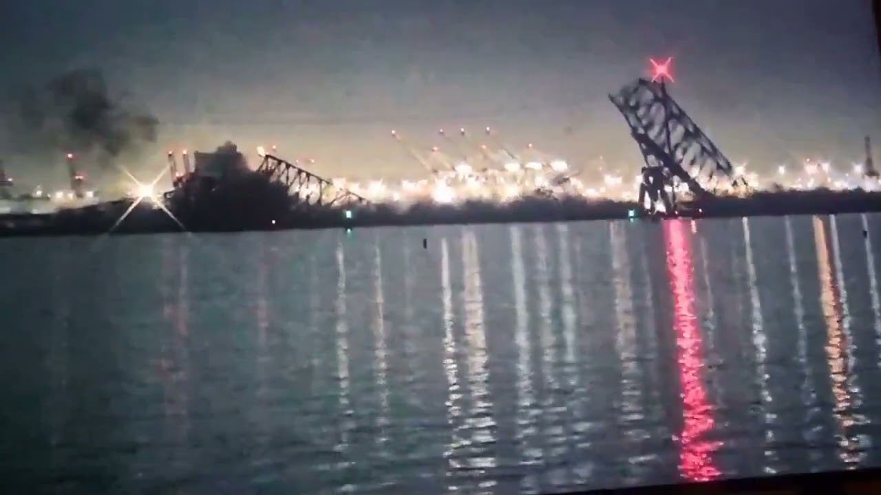 огромный контейнеровоз врезался в опору моста в Балтиморе