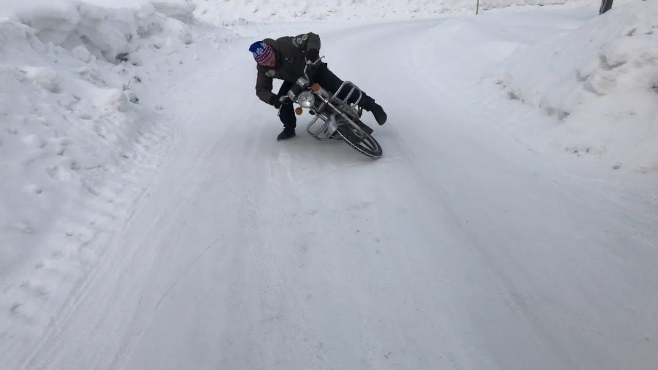 Воскресные выходные и мы с друзьями вместе. Выкатив ещё один мопед мы по очереди решили покататься по снегу, а ведь сейчас середина зимы