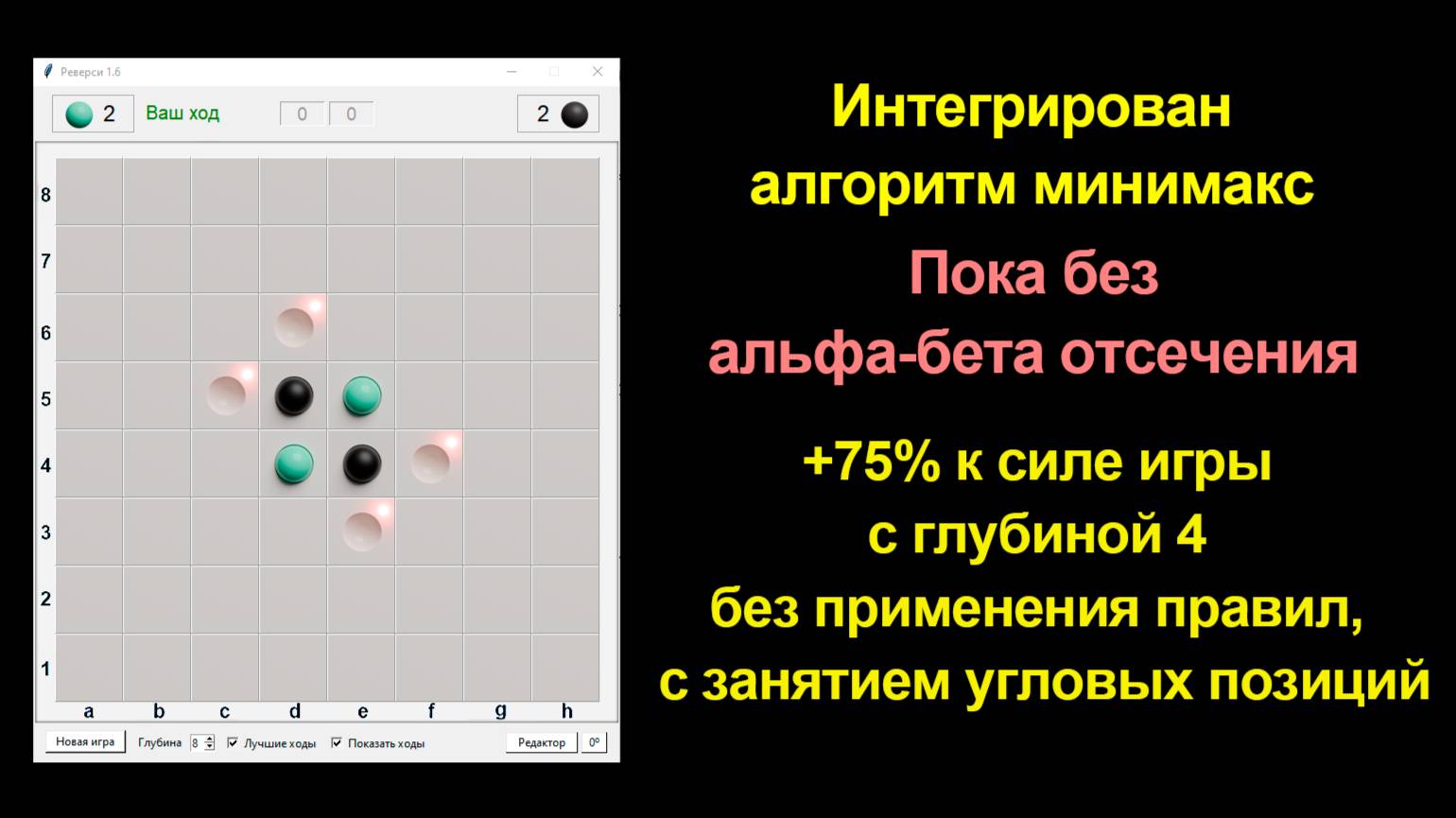 Решатель игры Реверси 1.6 на Python +75% к силе бота