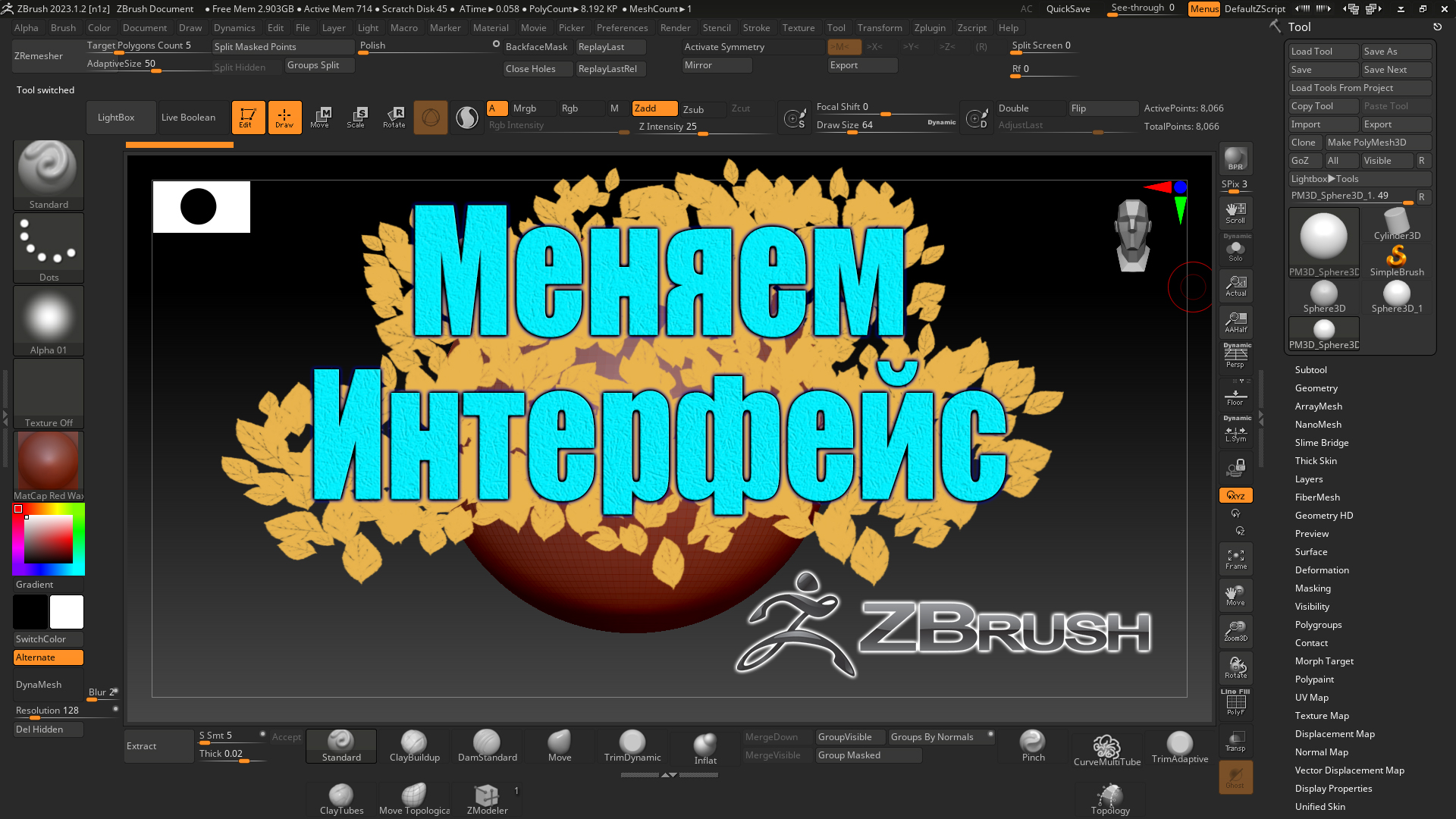 Изменение интерфейса в ZBrush, удаление лишнего в ZBrush, сохранение изменившего интерфейса в Zbrush