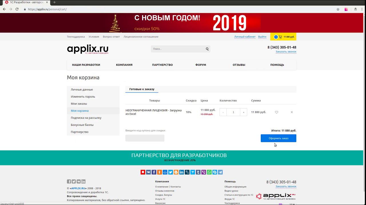 корзина и оформление заказа апликс