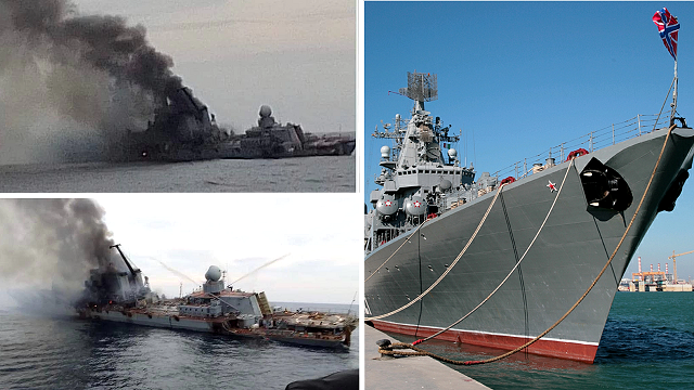 Появились первые кадры погибающего крейсера "Москва"