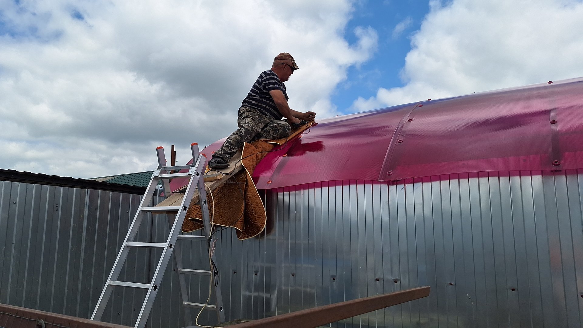 Укрываем беседку поликарбонатом, почти целый день промучились,никак не получалось состыковать.Закрыла компот.Ластенята вылупилисьЖизнь в Деревне.