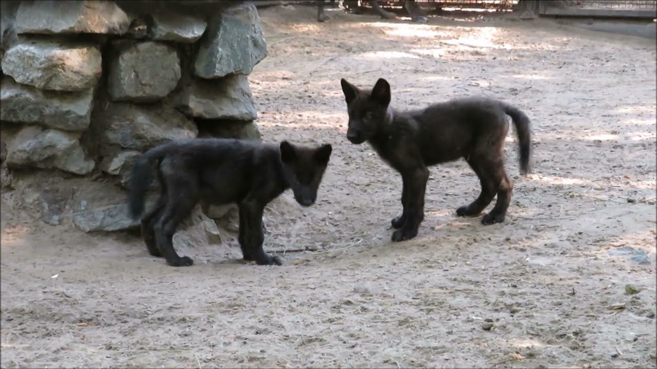 Четыре волчонка родились 5 мая. Они были крошечные и беспомощные. Сейчас это шустрые, ловкие и очень любопытные малыши, которых уже не удержать в домике. С каждым днем они становятся всё сильнее и чувствуют себя всё более уверенно. Правда, когда гремит гром и идет проливной дождь, волчата стремительно бегут в укрытие и прижимаются к маме. Черные волки большую часть своей жизни живут рядом с сородичами, охотятся стаей. Внутри каждой группы выстроена сложная система иерархических связей. Волки постоянно взаимодействуют друг с другом. Ученые, долгое время наблюдавшие за черными волками, установили, что эти животные общаются с сородичами не только посредством звуков, запахов, прикосновений, но и с помощью мимики. В условиях зоопарка канадские черные волки тоже живут большими семьями. Первая пара чёрных волков поступила в Новосибирск из Канады совсем малышами в 1992 году. С 1995 года канадские волки регулярно размножаются. Всего в зоопарке родилось 63 чёрных волчонка. Волчата обычно рождаются чёрными. В преклонном возрасте становятся седыми.