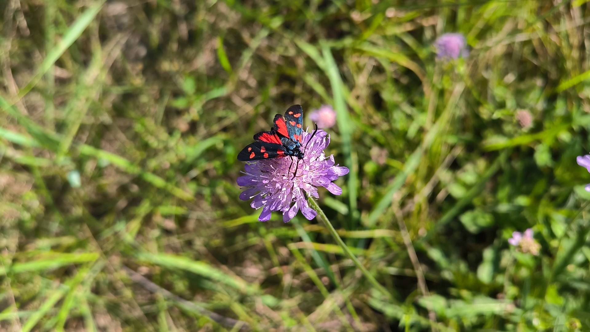 Пестрянка таволговая, летает и ест нектар с Полевых короставников