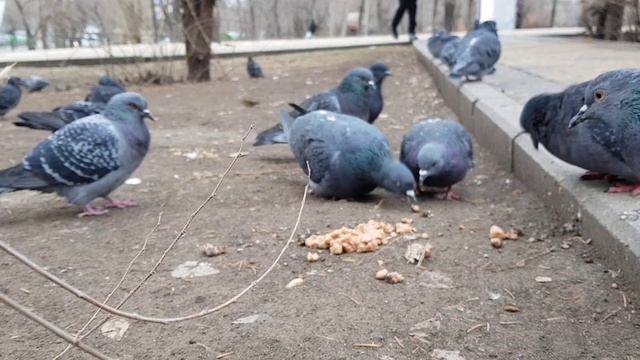 Глупые голуби в мороз сами лезут под ноги, Stupid pigeons crawl under their feet in the cold.mp4