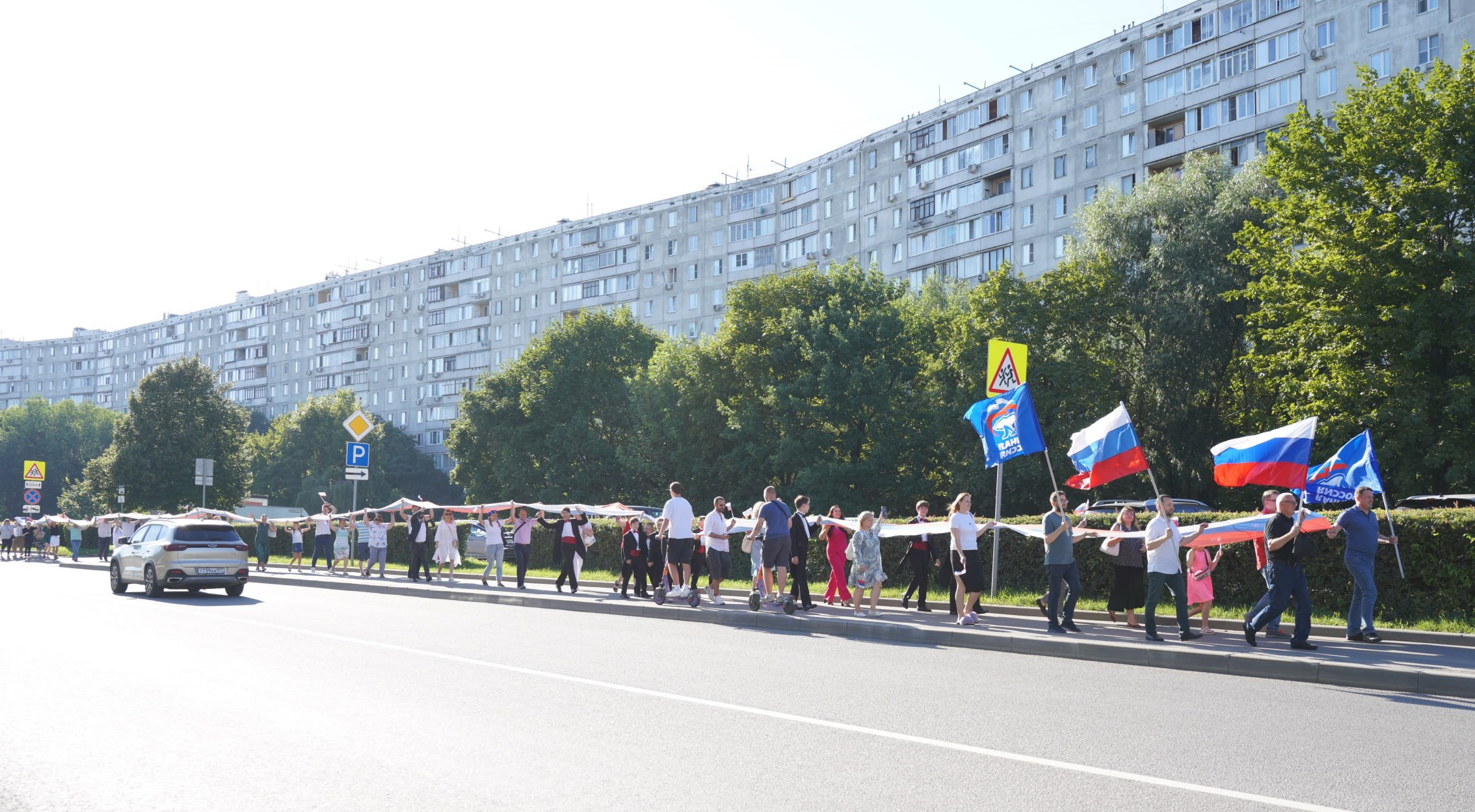 Единороссы СЗАО пронесли по улице 70-метровый триколор в честь Дня Государственного флага РФ
