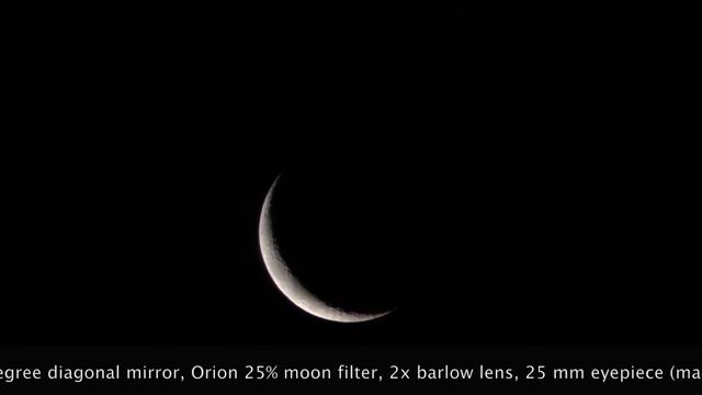 Crescent Moon through Celestron 102SLT 4 inch Refracting Telescope