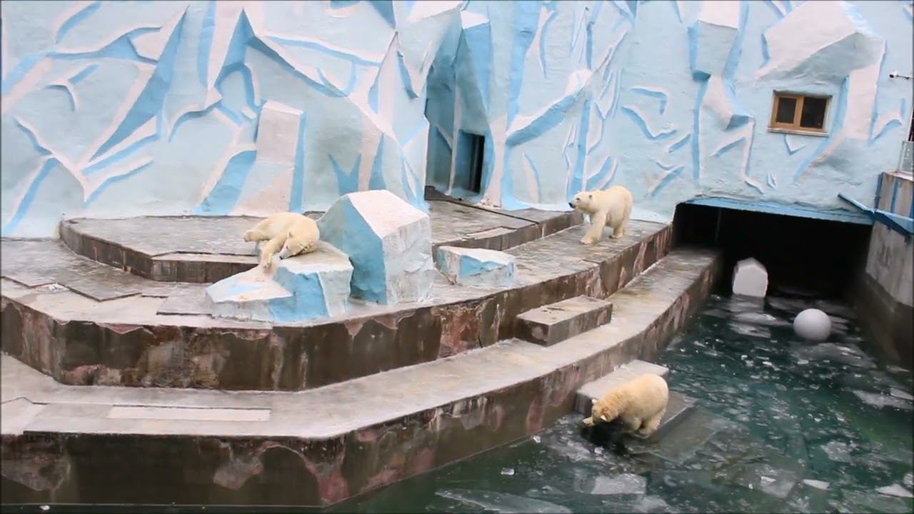 Герда родилась в Москве 20 ноября 2007 года. Её мама Симона, папа Врангель. В Новосибирск переехала 05.08.2008. В 2013 году у Герды и Кая родилась Шилка. В 2015 году она переехала в Японию. В 2015 году родился Ростик. 6 декабря 2018 года он переехал в Китай. В 2018 году родились Норди и Шайна. Сейчас они находятся в нашем зоопарке в закрытой от посетителей хозяйственной зоне. В другие зоопарки их не могут отправить. Сначала была пандемия, сейчас границы закрыты и санкции. Белые медведи Норди и Шайна содержатся в МУП «Новосибирский зоопарк имени Р. А. Шило» с рождения и по настоящее время. Данная пара молодых медведей находится вне экспозиции зоопарка, поэтому посетители не могут их видеть. Передача молодых медведей в другой зоопарк пока не планируется, — ответили на запрос редакции в пресс-центре мэрии Новосибирска. У них есть бассейн, игрушки. Их так же кормят как и раньше. Голодные не бывают. Шайна размером с маму, Норди с папу. Шайна командует Норди. Одиночные животные. Как правило, миролюбивы по отношению друг к другу, но между самцами в брачный период случаются стычки. Взрослые самцы могут нападать на медвежат. Гон с марта по июнь. Продолжительность жизни — максимум 25—30 лет; в неволе рекорд долгожительства — 42 года. Вес очень крупных самцов в некоторых частях ареала 700 и даже 800 кг: есть данные о зверях весом до 1000 кг. Обычно вес меньше. Самки всегда не только меньше, но и значительно легче самцов. Так, самцы в восточной Гренландии в состоянии нормальной упитанности весят 400—450 кг, хорошо упитанные — до 500 кг, самки, даже очень сытые, здесь же редко весят больше 350—380 кг, т. е. их вес составляет около 75% веса самцов. Длина тела на 3-й день после рождения 28—32 см, средний вес — около 755 г (650—840 г). На 26-й день длина тела увеличивается незначительно — до 35—38 см, а вес возрастает до 1125—1275 г. В возрасте 60 дней самцы весят около 7 кг, самки — около 6 кг при длине тела у первых 58—60 см, у вторых 54—58 см. В возрасте 4 месяца медвежата достигают веса 22—23 кг, в 6-месячном возрасте при длине около 110 см — 40—43 кг, в 8-месячном — 58—62 кг. Длина тела в возрасте с 6 до 9 месяцев нарастает по 6—7 см в месяц. Во время зимнего сна рост почти прекращается. В зоопарке медведей кормят утром морской рыбой, хлеб с рыбьим жиром внутри, морковь, яблоки, морская капуста, яйцо дают сырое. Медвежат подкармливают молоком из соски. На ужин мясо (говядина, конина, куры или индейка). Летом и осенью арбузы, дыни, ранетки, кабачки, тыквы, огурцы. Когда показательное кормление летом бросают живую рыбу. Медвежата с медведицей находятся до 2-х лет. 16 декабря 2022 года Герда родила 2-х медвежат. И это две девочки! Имена дали 25 июня. Медвежат зовут Стрелка и Белка. Обзор вольеров белых медведей https://www.youtube.com/watch?v=mAt_b7JD0B4&list=PLGvf0V-rAHxkpGKJaWIZIUxRKgKiqV3xZ&index=17&t=0s
