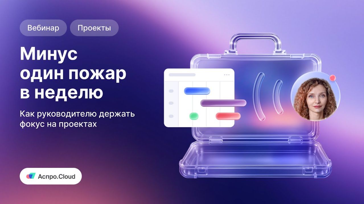 Как руководителю перестать тушить пожары и начать эффективно управлять проектами? На этом воркшопе вместе с продакт-менеджером Кристиной Клипфель-Лукиной покажем, как освободить голову от рутины, делегировать типовые процессы, но при этом не терять контроль. Вебинар подойдет всем, кто хочет навести порядок в проектах, но не знает, с чего начать. А также пользователям Аспро.Cloud, которые используют модули «Проекты» и «Задачи», но хотят повысить эффективность работы. 👉 Полезные ссылки: Пройдите бесплатный курс по бизнес-процессам: https://stepik.org/course/218879/promo. Изучите документацию по настройке модуля «Проекты»: https://clck.ru/3NgMB2. Начните управлять проектами эффективно: https://clck.ru/3NgMEY. Запишитесь на бесплатную демонстрацию системы от экспертов по внедрению: https://clck.ru/3NgMRV
