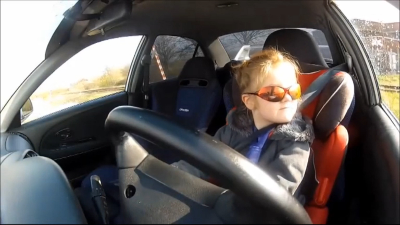 Маленькая девочка за рулем Mitsubishi