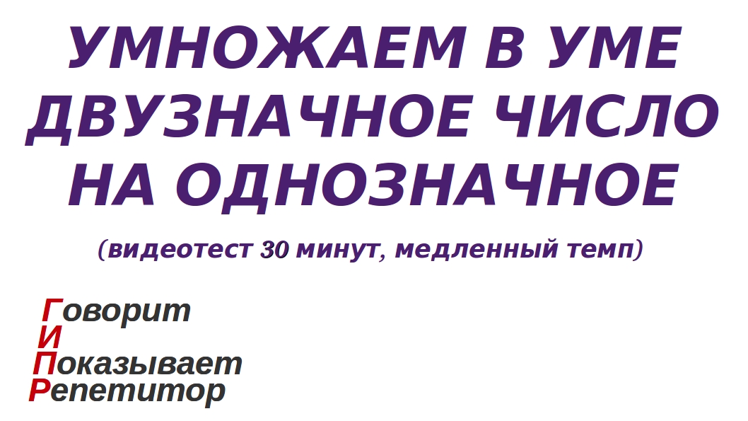ГИПР - Умножаем в уме двузначное число на однозначное, видеотест 30 мин, медленный темп