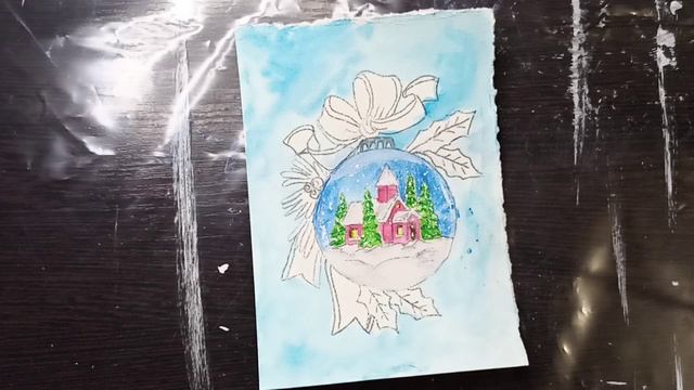 Шарик на елку / Рисунок акварелью