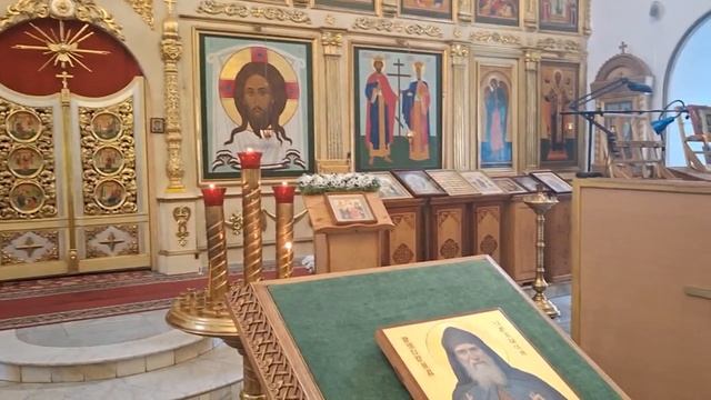 Иеромонах Дионисий, благочинный Алексиевского Боголюбского мужского монастыря г. Владимир, читает молитву перед иконой преподобного Гавриила Самтаврийского с частицей его мантии. Собрал средства на икону и передал её в обитель Фонд Архангела Михаила.